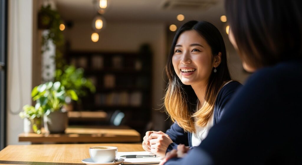 カフェ注文・面接・旅行などの実践シーンで自信をつける。