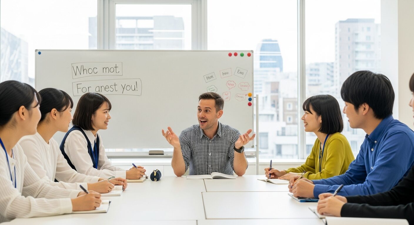 ネイティブ講師との会話を通じて、自然なフレーズを体得。 - 📚 4技能(読む・書く・聞く・話す)を統合学習